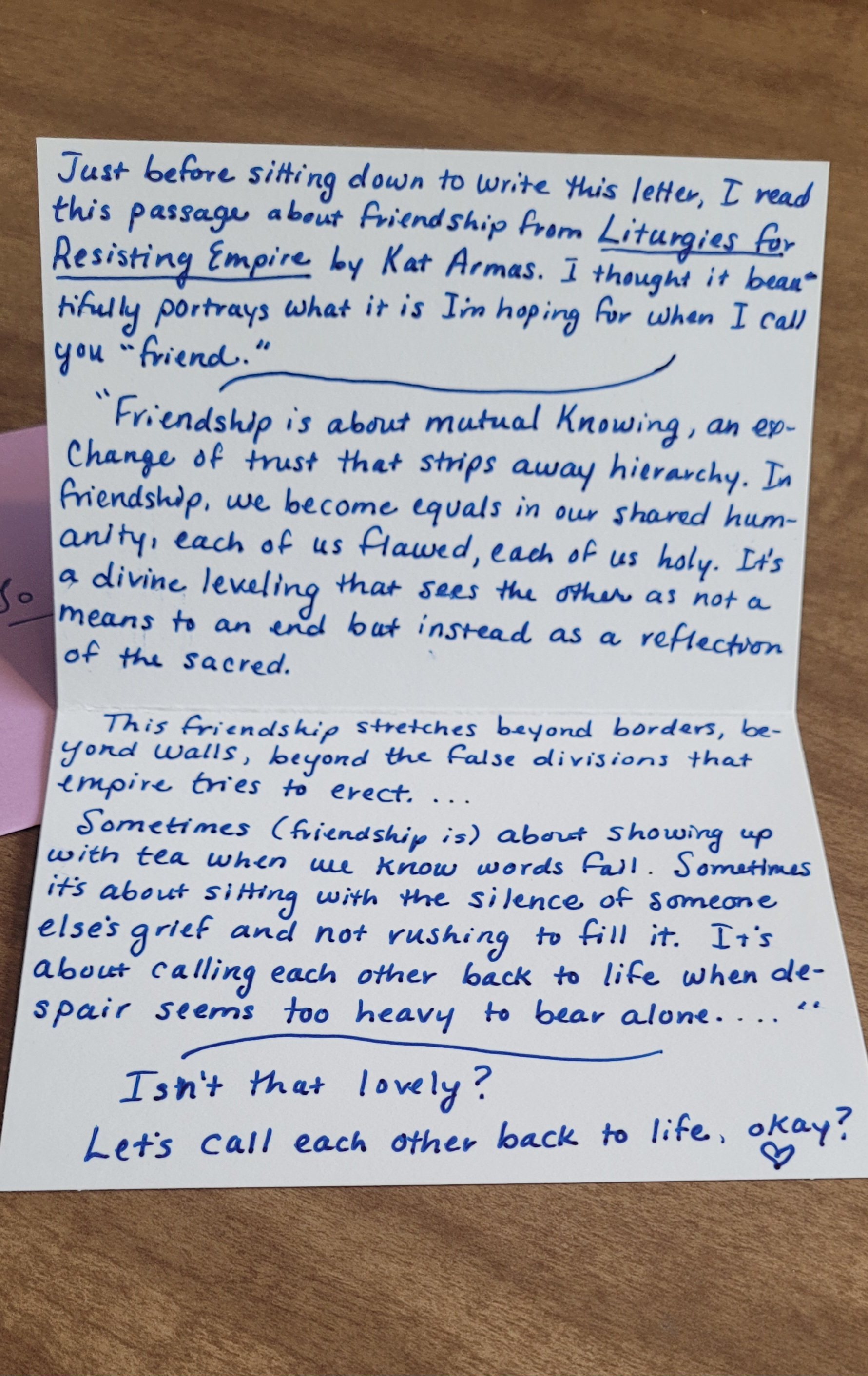 I think I’m going down this rabbit hole because writing these letters feels a lot like baring my soul, and yet it doesn’t freak me out. Maybe letter writing is my love language. Maybe it’s my attempt to make eye contact.