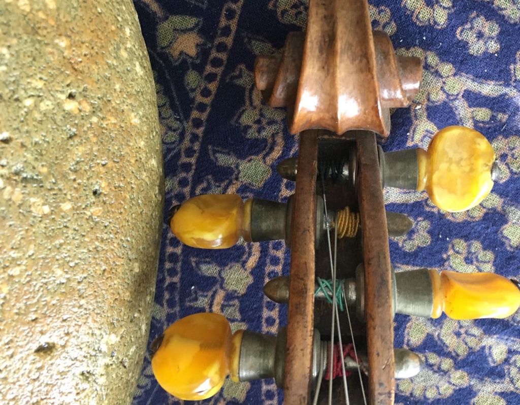 I found a good rock, a candidate for keeping, and carried it with me for a while until I found another. And I did this a few more times, having to make a choice about which one to keep with each new find. Finally I found the rock I wanted to bring home with me. It wasn’t the most beautiful rock of the day, but I chose it because it’s got an amber hue to it, like the pegs on my fiddle.