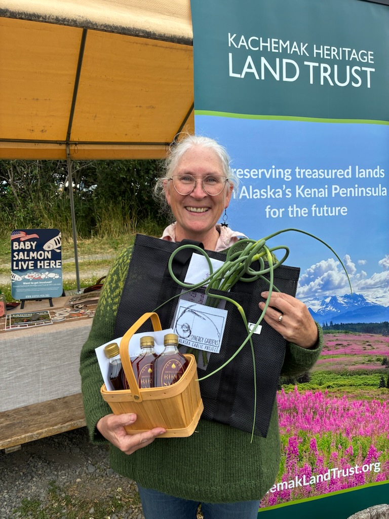 Another fun highlight of 2025 was winning the Kachemak Heritage Land Trust raffle. We were vending at the farmer’s market when I got news that I’d bought the winning ticket. My winnings included incredible bounty from local food producers and businesses – birch syrup, honey, a whole goose, a Traeger Grill, lots of fun swag, ice cream, a fondue pot, and gift certificates for knife sharpening, baked goods, garden supplies, a fishing charter, and loads of veggies, which helped compensate for this year’s less than perfect garden. I felt lucky, to be sure, but also grateful to live in a town that’s comprised of so many generous people who are contributing to such inspiring work.